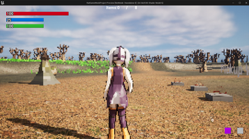 New Developments The biggest part of this was not only getting the project closer to completion but also looking a lot better. The biggest change that I made was creating a new player model from the ground up. I designed the character taking some inspiration from magical girl shows and adding a few twists such as the gas mask to tie in with the sort of “hunter” theme I was going with. Then, I modeled, rigged, animated, and exported it to unreal while vastly improving the quality of my workflow. From there, I reconstructed the original animation states, and character actor, and fixed up some of the programming in it to allow scale easier with updates. I then added more weapons and functionality with an inventory system (something that I often struggled with in the past LOL). I added some more feedback to the player, a new settings menu (which I also never did before in the past LOL), and a lot of other QoL stuff. Finally, I started working on a basic game loop akin to the one I’ve done before with Dr Aple. While I don’t plan on having this be the main (or only) game mode for a more developed game, I think that for now, it explores enough of the game’s systems to demonstrate the project.